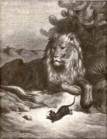 ضحك الأسد في أستهزاء وقال أنت أيها الفأر فقال الفأر نعم فقط أمهلني شهر فقال الأسد موافق ولكن بعد الشهر سوف أقتلك إن لم تقتلني